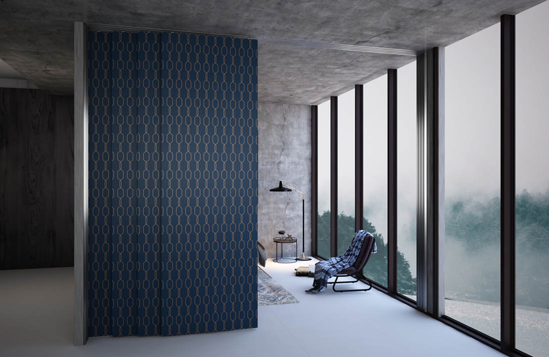 The panels are suspended from the ceiling track using specially designed bend-resistant suspension elements and versatile rollers, which enable the panels’ movement.