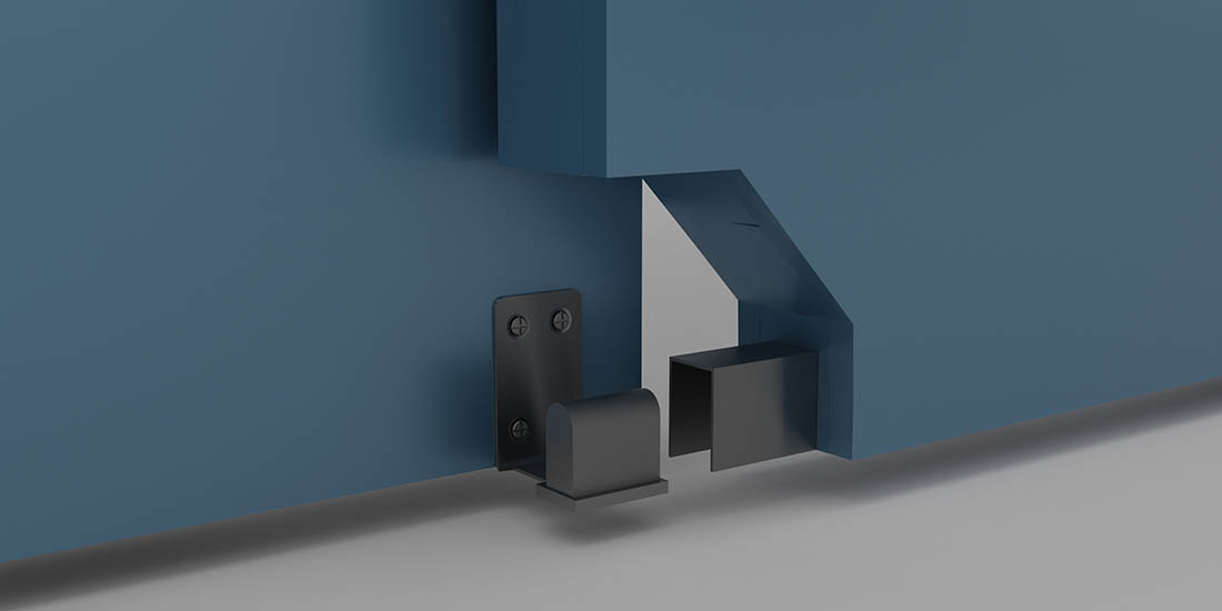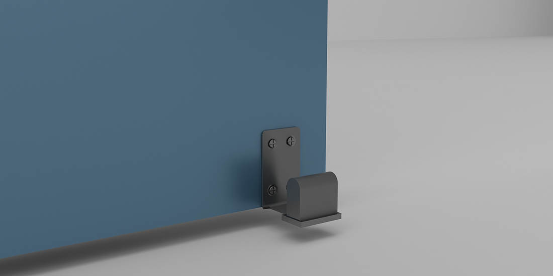 The aluminum track that carries the panels is located in the ceiling code, and there is no track or guide at floor level.