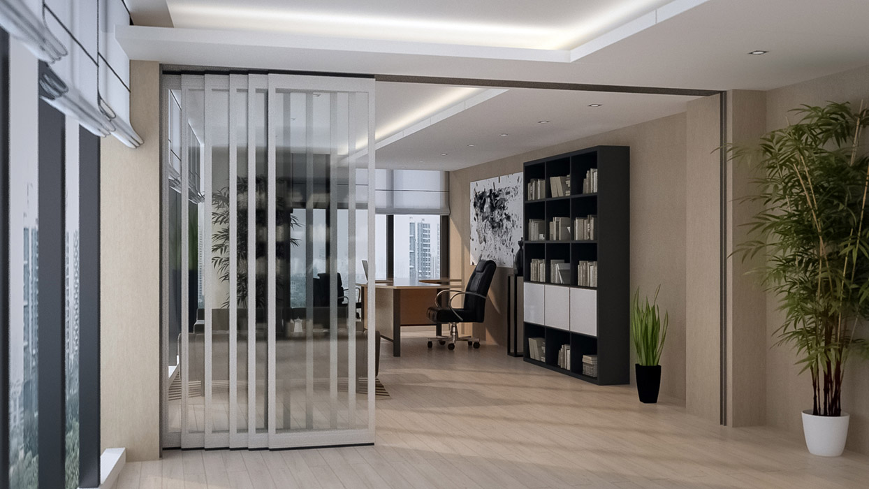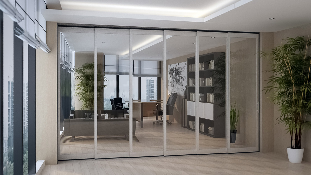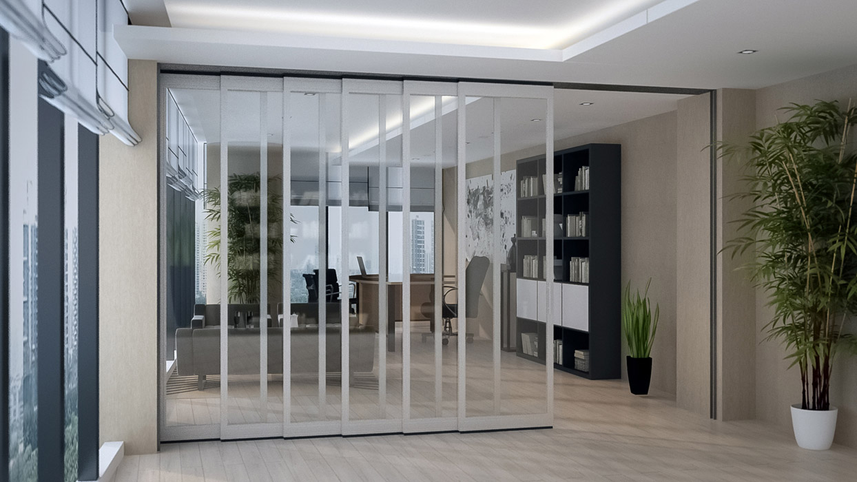 Kayar cam duvar sistemimizi kullanarak İster düz bir duvar, isterseniz de L tipi duvarlar elde etmeniz mümkündür. Panslide Glass, doğal ışıktan maksimum düzeyde yararlanmamızı da mümkün kılar. İç mekan tasarımının bütünlüğüne uygun olarak cam yüzeyine desenli ya da dijital baskılı folyolar uygulanabilir. Gerektiğinde mekanlar arasında geçişi sağlamak için baştaki ya da sondaki panel açılır/kapanır olarak düzenlenerek bir kapı gibi kullanılabilir. Sisteme özel kilitleme mekanizmaları sayesinde duvarların sabit olarak kalması sağlanabilir. Sistem açıldığında cam paneller tek ya da çift yönde depolanabilir.
